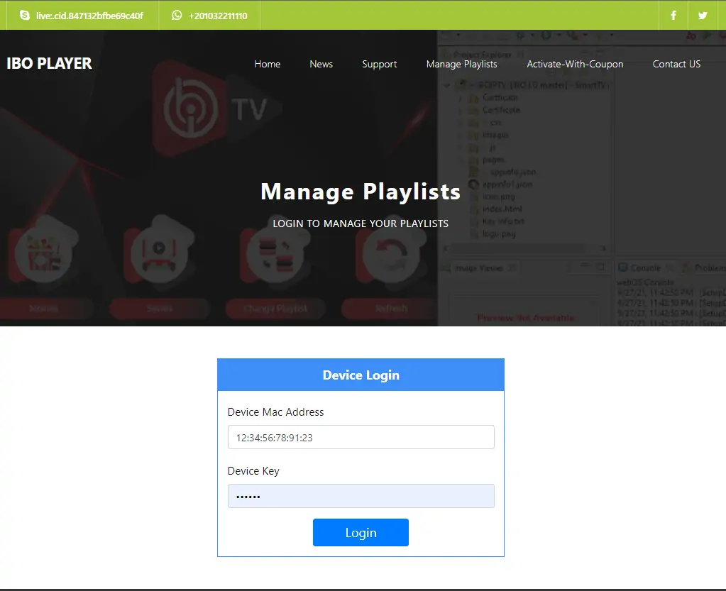 3. Then you need to go to the ibo player website https://iboplayer.com/device/login, put the device ID and the device key on the field like the screenshot bellow, and click Login